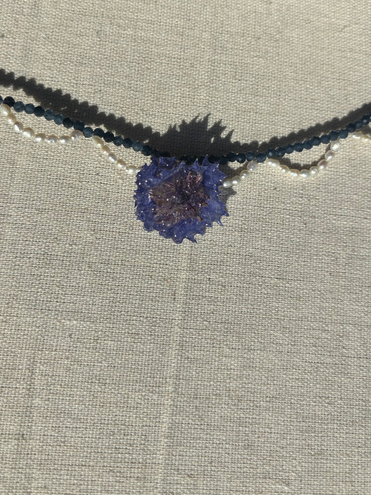 Cornflower, Lapis and Fresh Water Pearl Choker