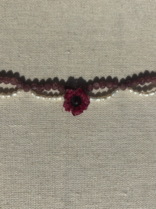 Manuka, Rhodochrosite and Fresh Water Pearl Choker