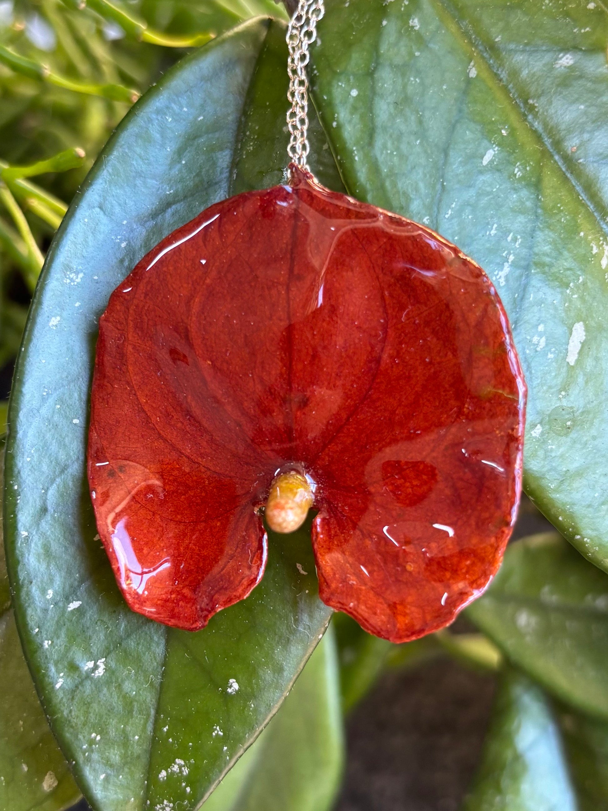 Yes! its a real preserved anthurium flower. Lovingly 3D dried and coated in UV resin, with a silver plated chain and findings.