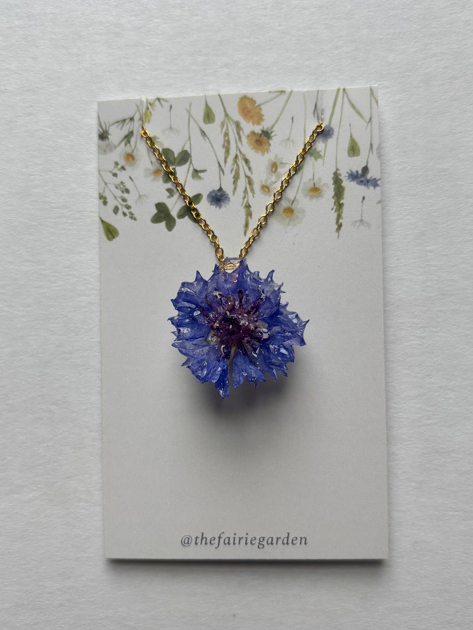 Yes! this is a real preserved Cornflower. Lovingly 3D dried and coated in UV resin, with gold plated findings.