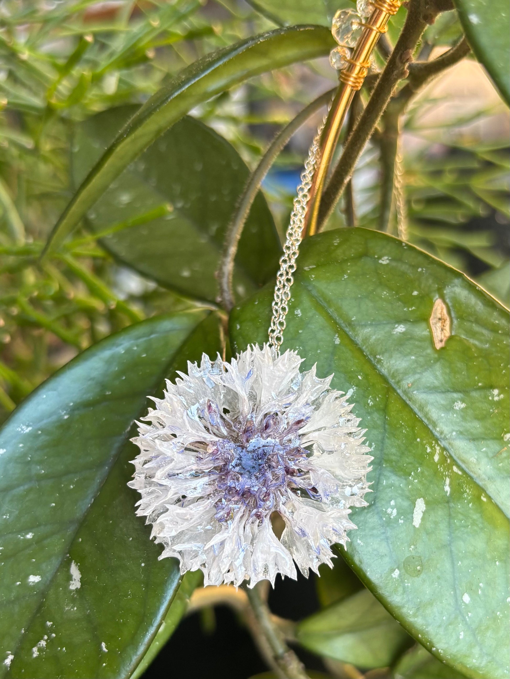 Yes! this is a real preserved cornflower. Lovingly 3D dried and coated in UV resin, with silver plated findings.