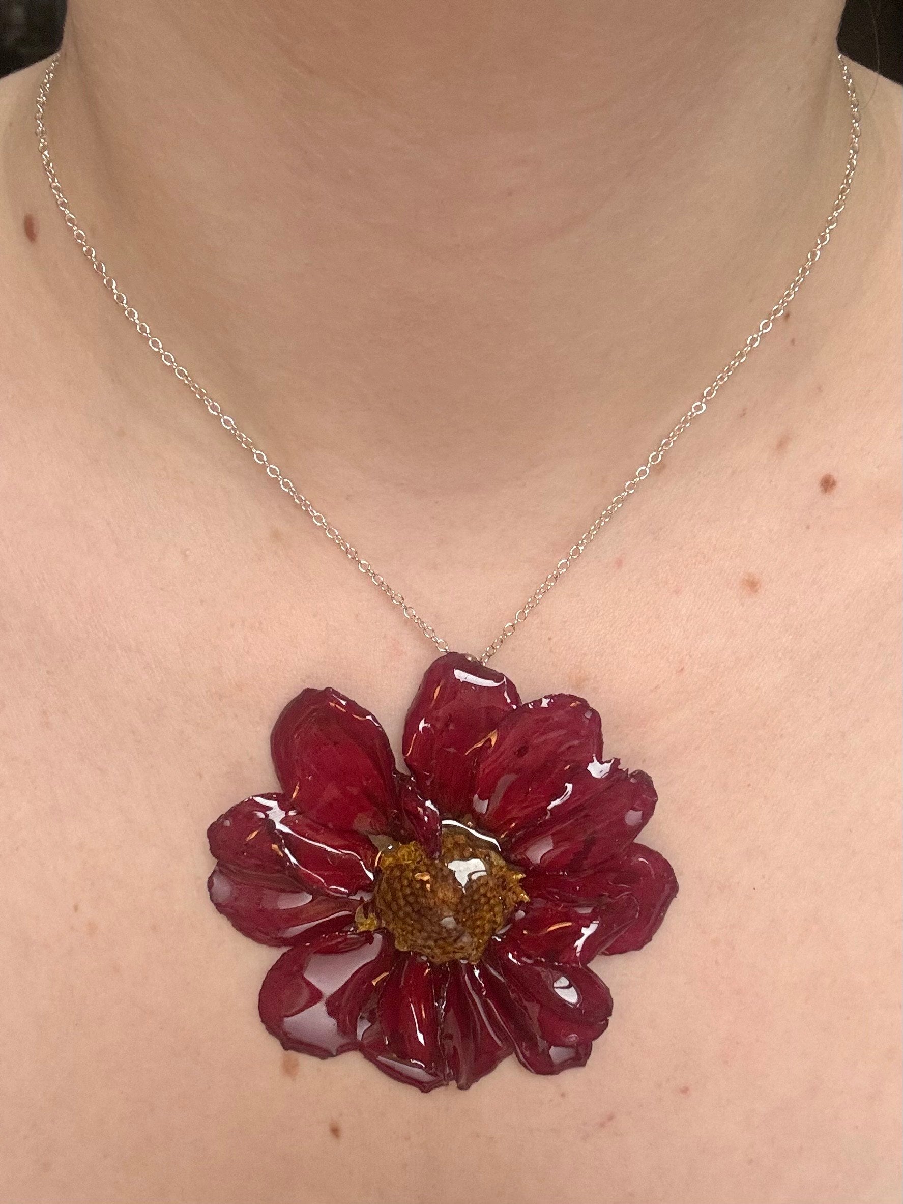 Yes! this is a real preserved Dahlia . Lovingly 3D dried and coated in UV resin - with a silver plated chain and findings.