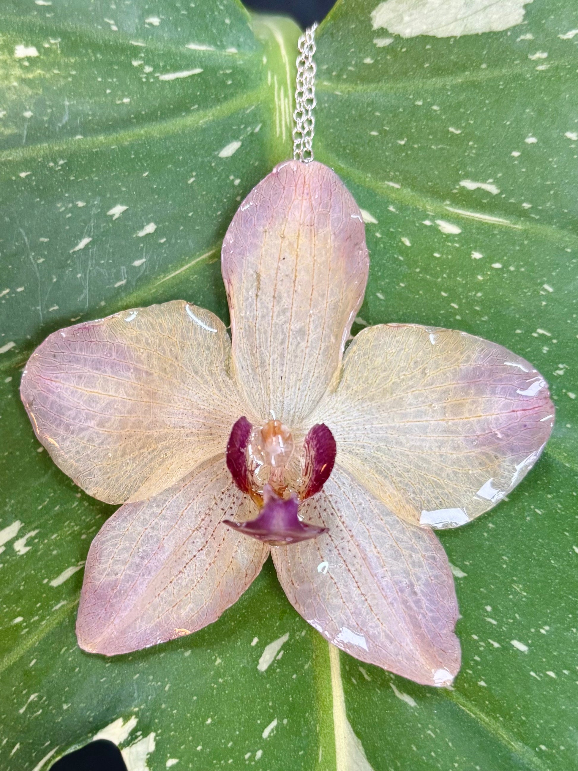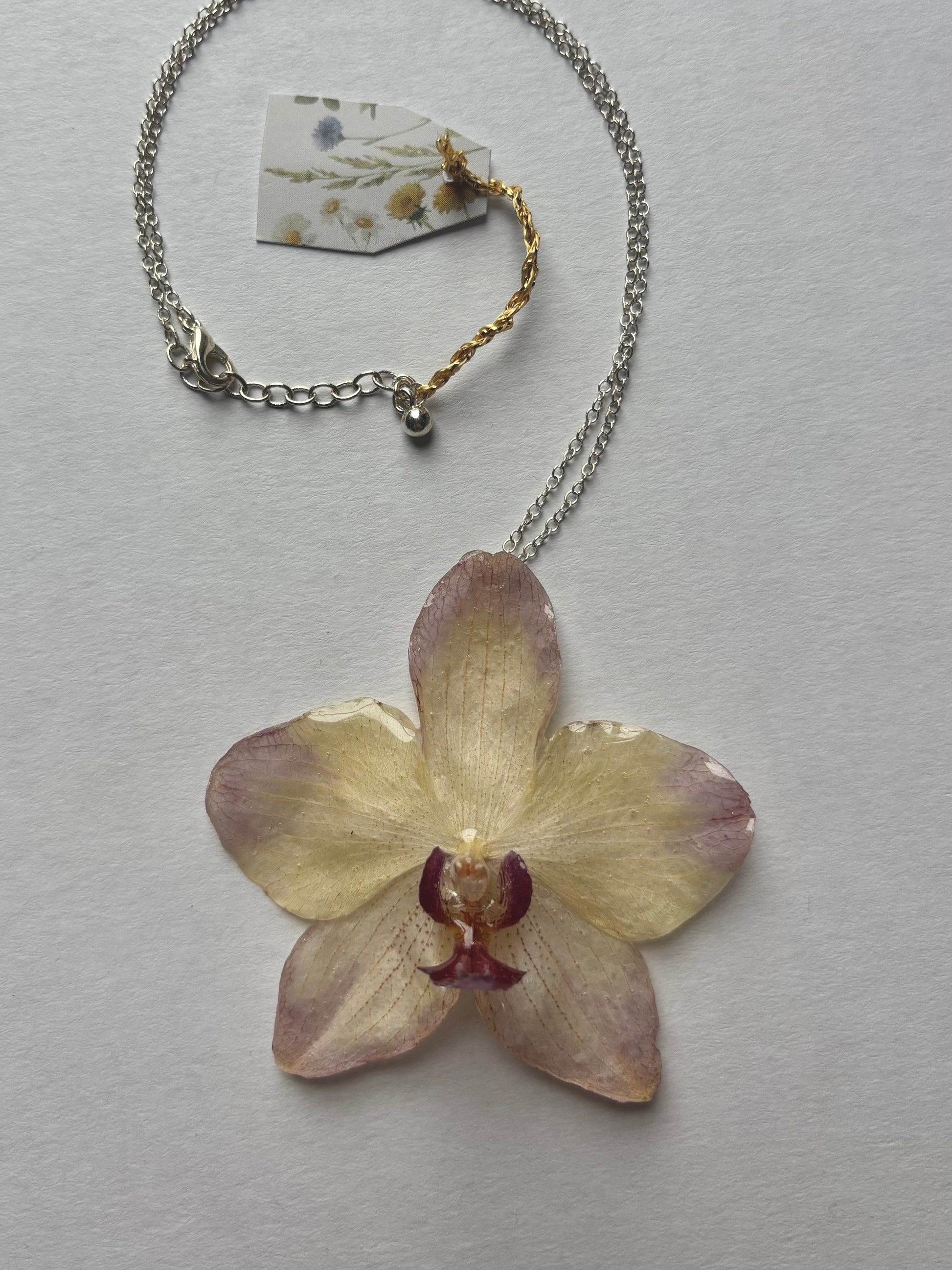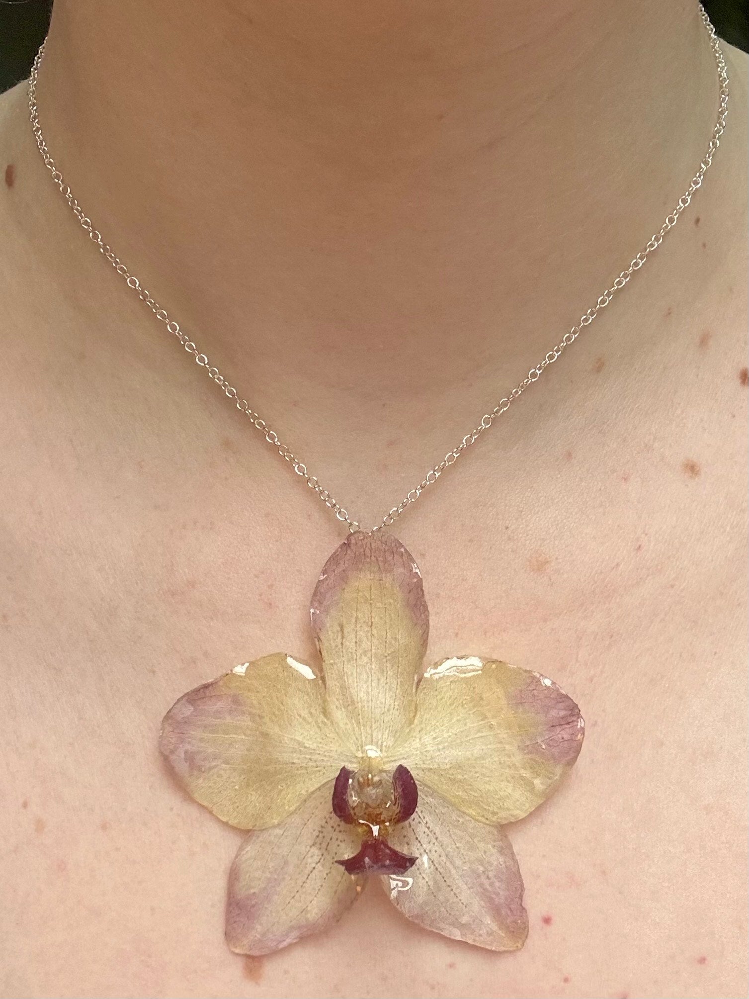 Yes! its a real preserved orchid. Lovingly 3D dried and coated in UV resin, with a silver plated chain and findings.